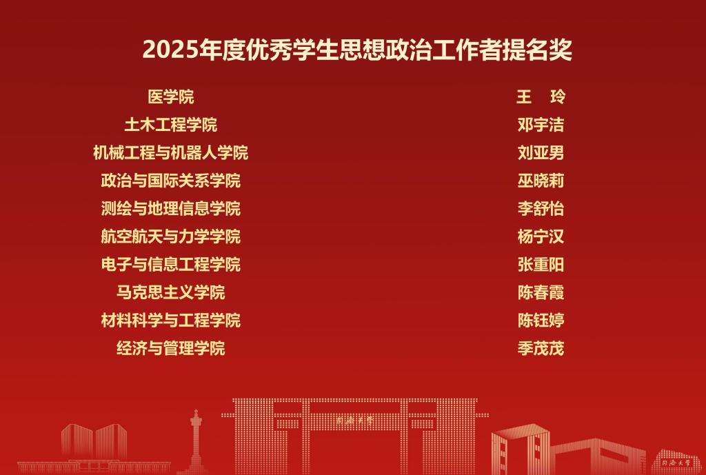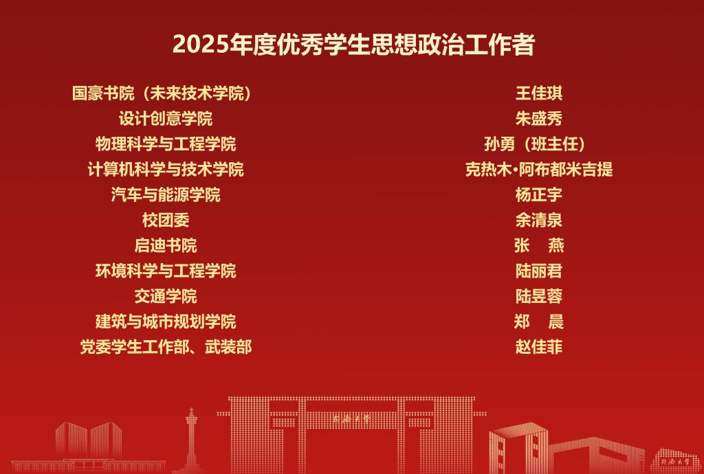 会上,2025年度同济大学优秀学生思想政治工作者及提名奖正式揭晓。