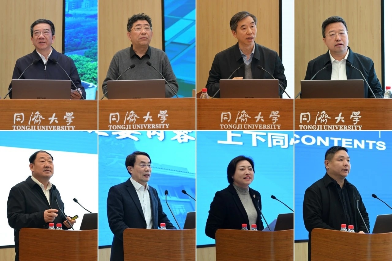 郑庆华作总结讲话,系统总结了学校“十四五”时期取得的代表性成就,对开启“十五五”新征程作出动员部署。他指出,过去5年来,学校逆势而上,向新向优,奋力转型,各项事业取得了长足进步。锚定2035年建成教育强国、科技强国的战略目标,我们要共同思考“同济大学靠什么建成中国特色世界一流大学”这一道必答题。要用好改革关键一招,下大力气破解改革难题,蹄疾步稳。要深入推进“数智化、绿色化、融合化”赋能学科创新发展,持续推动学科结构优化调整。要深化人事制度改革,进一步激发师资队伍活力。要优化教学科研设备等公共资源的配置,促进集约共享,为办学提供有力支撑。要加强党的全面领导,加强班子建设,强化担当作为、强化狠抓落实,纵深推进全面从严治党,为推动学校事业高质量发展提供坚强保障。