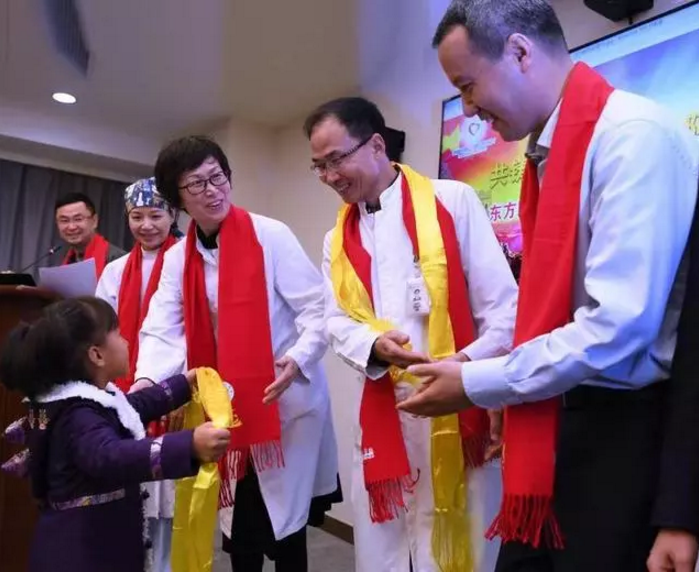 9名来自四川阿坝藏族羌族自治州先天性心脏病小患者近日在同济大学附属东方医院心外科成功完成免费手术,他们中最大的12岁,最小的仅1岁半,12月19日,医院为这批小朋友举行了隆重的出院欢送会,并向他们赠送新年礼物。康复后患儿向医生和志愿者献上哈达以表感谢。据记者了解,此次患儿的手术费用,40%来自于同济大学附属东方医院对接的慈善基金的资助,加上医保报销及统战部“同心•共铸中国心”基金会提供的交通、食宿资助,患儿此次上海“补心”之行没有给家庭带来任何经济负担。