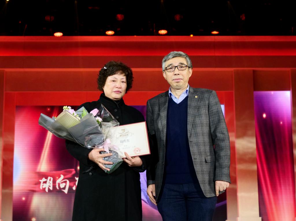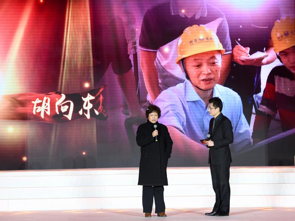 在港珠澳大桥建设中,同济大学土木工程学院胡向东教授带领学生,采用创新的“管幕冻结法”,啃下拱北隧道255米长暗挖段这块施工难度极大的“硬骨头”。但就在攻坚的紧要关头,他的身体却亮起了红灯。就在本月,他因病离世。颁奖现场,听着胡老师爱人如泣如诉的讲述,师生们落下感动的热泪。“……披肝沥胆十数载,双鬓白发志未堕。不向顽疾垂皓首,顽强抗争斗病魔……”胡老师的学生们献上一首饱含深情的诗朗诵,向恩师表达深切的缅怀之情。