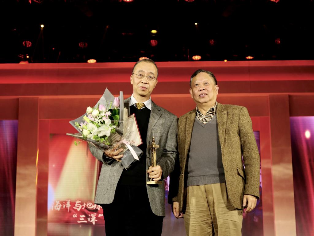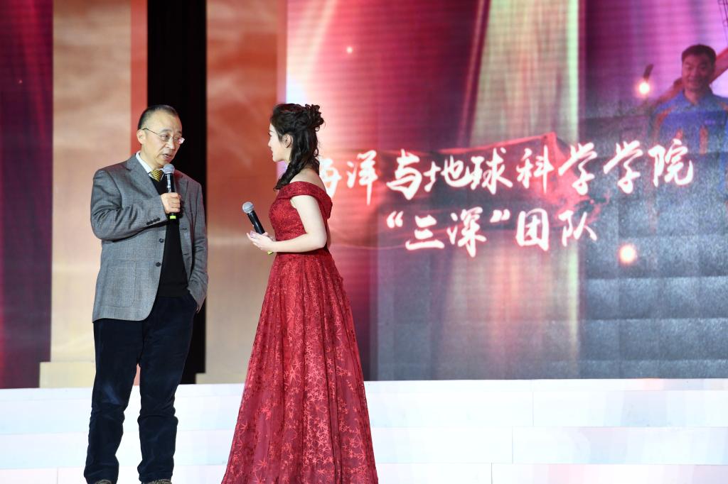 “深潜、深钻、深网”,是当今向深海进军的三大手段,同济大学海洋与地球科学学院汪品先院士领衔,以翦知湣、周怀阳为主要代表的“三深”团队,一直瞄准深海研究的制高点,积极推动着我国深潜科学考察、南海大洋钻探、国家海底科学观测网建设等“三深”事业不断向前发展,为把我国真正建设成为“海洋强国”不懈奋斗着。周怀阳教授代表团队领奖,他说:“我们的海洋精神,就是同舟共济的精神。希望通过团队的努力,让‘三深’取得的成果越来越显著,成为支撑‘海洋强国’的重要力量。”