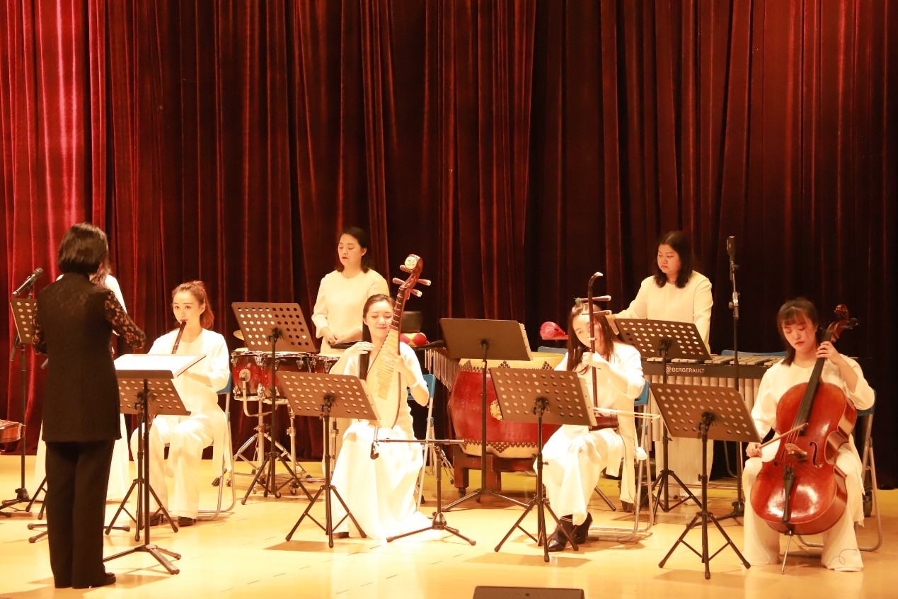 4月11日晚,“高雅艺术进校园”系列活动之民族音乐会《国乐中的诗书画》在嘉定校区济人楼101上演。上海民族乐团党委书记朱建新,我校团委、艺术中心负责人和近三百名师生共同欣赏了上海民族乐团带来的精彩音乐会。