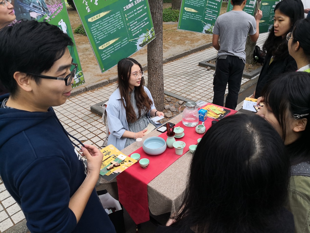 传统文化集市上,除了栩栩如生的面塑、巧夺天工的剪纸,师生们还可以品茶香、学戏曲、识方言、做发簪,自己动手进行活字印刷,参加投壶运动等,丰富多彩的传统文化活动吸引了许多师生的参与。在本次活动中,金音笛艺社献上了《茉莉花》《红歌联奏》的笛声表演,越剧社《盘妻索妻》(选段)、昆剧社的《思凡》、京剧社的《霸王别姬》依次上演,辟雍汉服社的舞蹈《礼仪之邦》用舞蹈表现华夏民族的不凡气度。本次传统文化节中华经典诵读比赛的一等奖获得者李鹏朔同学的《苏东坡词三首》带观众进入诗海遨游,相声社的《绕口令》给在场的人们送去了欢笑。与此同时,对诗句、猜灯谜的游戏也让同学们体验到了文学的趣味,演出与互动相结合的形式更是为整个集市带去了活力。南大道还展出了来自学生社团的优秀书画作品和参与本次传统文化节书画比赛的部分获奖作品,引得许多老师同学驻足欣赏。