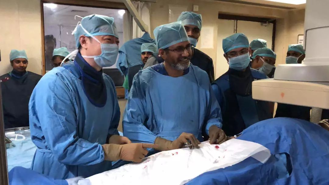 2019年7月,同济大学附属东方医院心血管内科杨兵教授受印度国家Kondapur KIMS医院Ravi Kumar Aluri教授和Yashoda医院V Rajashekar教授的邀请,前往当地进行学术交流及手术指导。