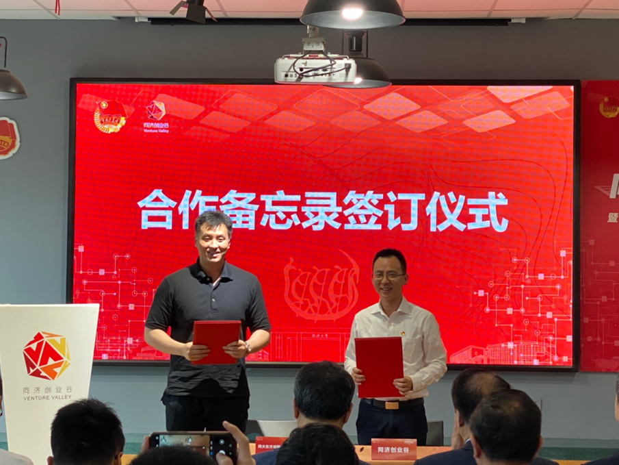 为搭建社会资源与创新实践协作平台,发挥同济创业谷与校友和外部基金“联动”的创新生态优势,当日,同济校友胡金华、肖水龙联合设置的“同大东方创新创业基金”启动,首期基金设立210万,追加投资规模不低于3000万,并将与同济创业谷就项目跟踪服务、创新创业实践等持续深化合作。活动现场,同大资产法人代表朱江和同济大学团委书记陈城签订了合作备忘录。