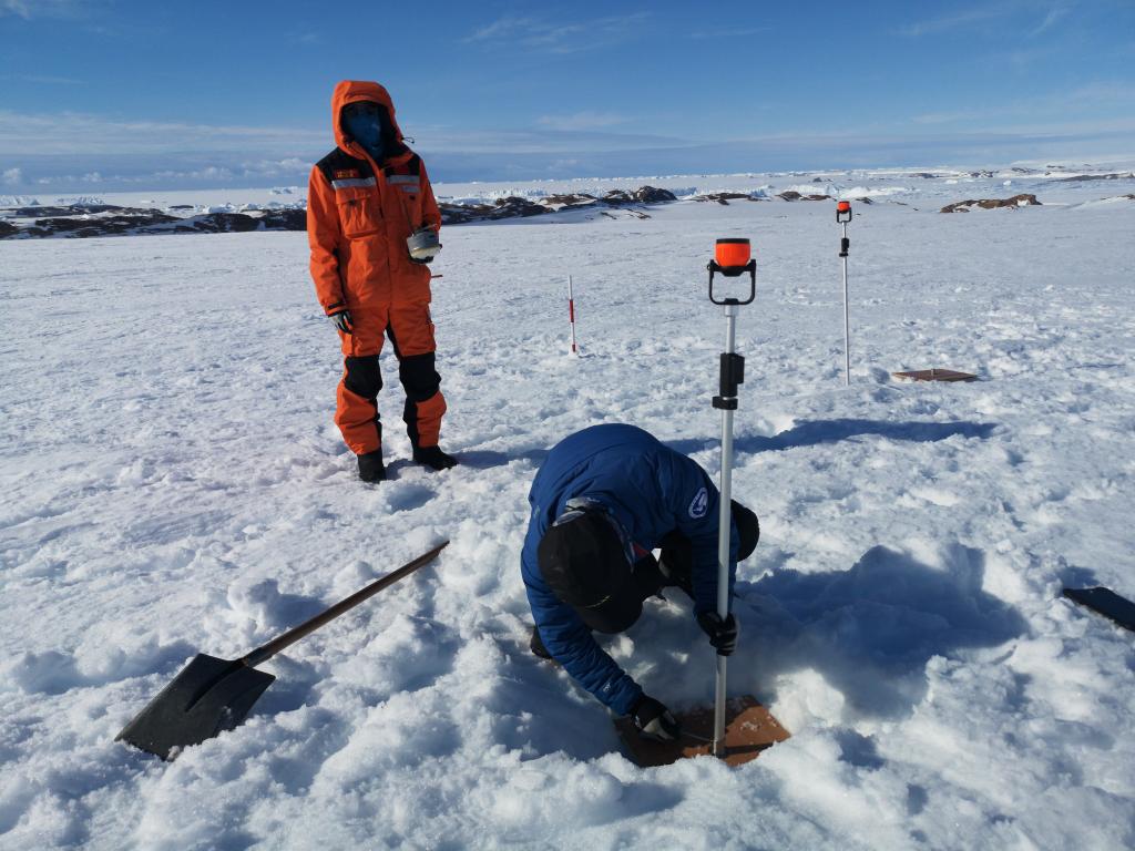 “在内陆线上,为了保证各关键区域冰流速的正常持续观测,我们维护了历年来安装的3个角反射器,又安装了一个新的。”郝彤介绍说,冰盖上不同区域的降雪积累率和冰流速均不相同,通过角反射器进行冰流监测的方法最为准确,但也存在角反射器被掩埋丢失的可能,比如这次找到的一个较早安装的角反射器,找到时仅高出雪面10厘米,再晚来一个月它可能就被积雪湮没了,这个观测点也就没了。