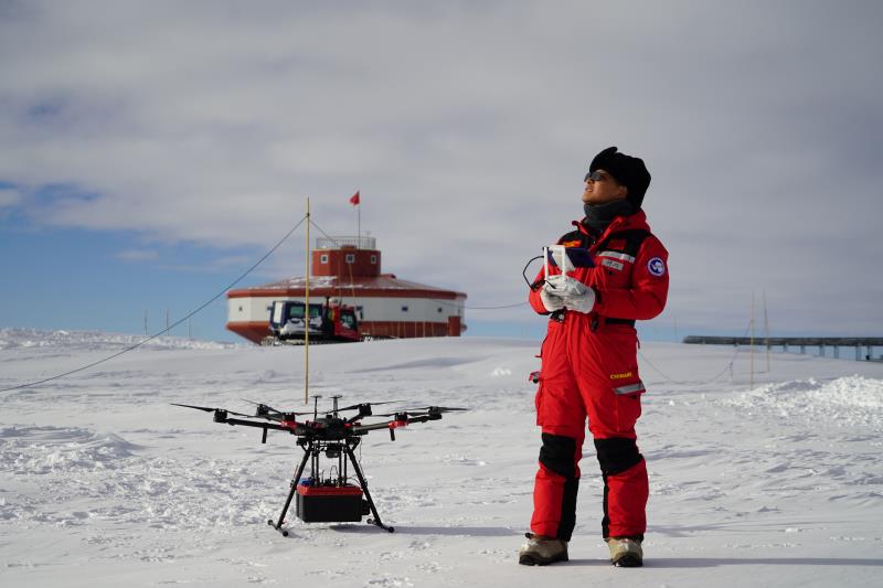 “在海冰厚度测量上,以往只是科考队员依靠经验打钻测量冰厚,由于测点稀疏,路线的整体安全性尚得不到完全保证。”郝彤教授介绍说,“而这次我们尝试通过大疆无人机搭载国产探冰雷达,克服南极磁场对无人机航测的干扰,对规划卸货路线进行了快速海冰‘体检’,极大地提高了海冰测量效率。和打钻实测对比发现,雷达冰厚数据较为准确,符合预期。”这种新方法还能应用到冰下裂隙的探查上。例如,在进入陌生区域前先用无人机载冰雷达探查一条安全的路线,规避危险的冰裂隙,保证科考人员和车辆物资的安全。
