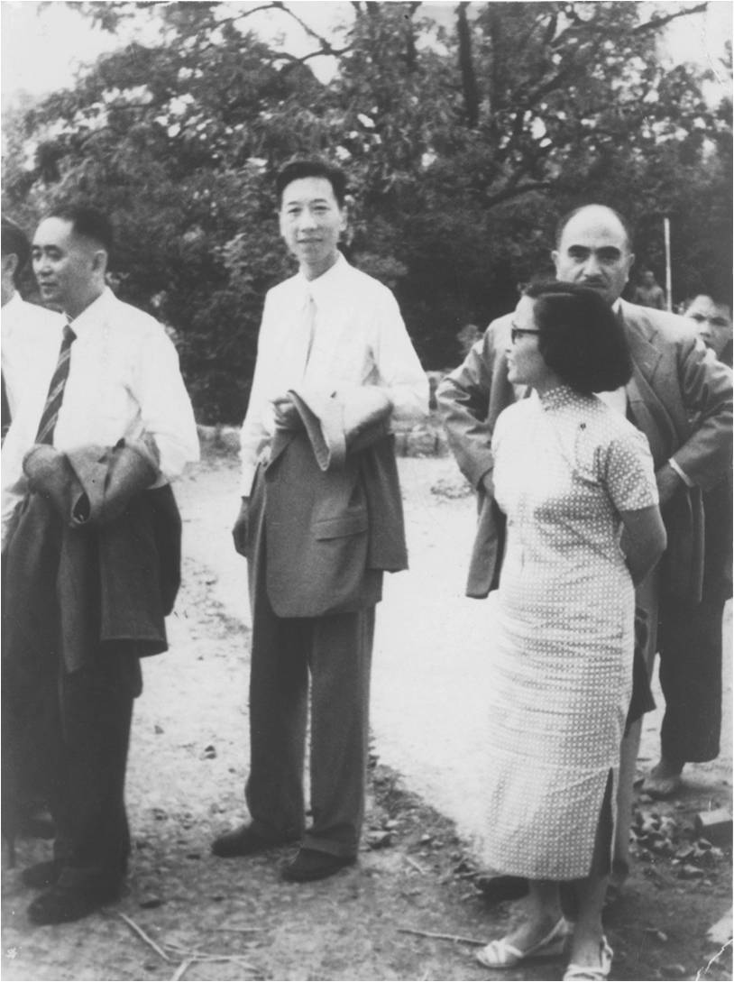 1955年,与吴景祥、冯纪忠、谭垣等教授在一道交流。