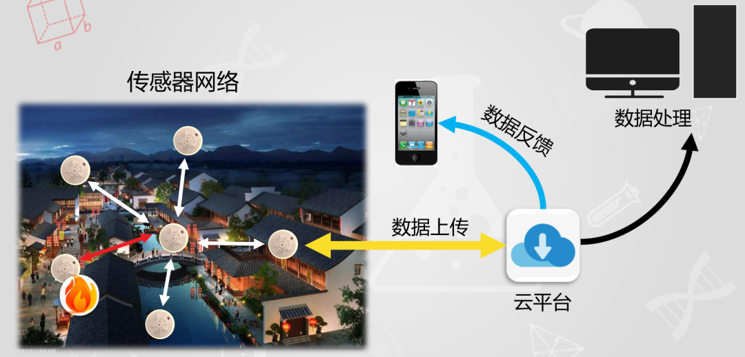 “基于云互联的火灾现场人员疏导方案”项目团队基于物联网、云应用、Zigbee等技术,通过在区域内布置传感器节点,构建成传感器网络,用于实时监测火情并将收集到的数据上传至云端,火灾监控指挥中心的计算机通过云平台的API获取云端的数据后,进行实时处理,一旦发生火灾,计算机将发出报警并结合路径规划算法生成人员疏散路线规划图,并随着火势的蔓延实时调整疏散路线,为管理人员指挥现场安全疏散提供可靠参考。同时,根据云端获得的火情分布信息也能指导消防工作。