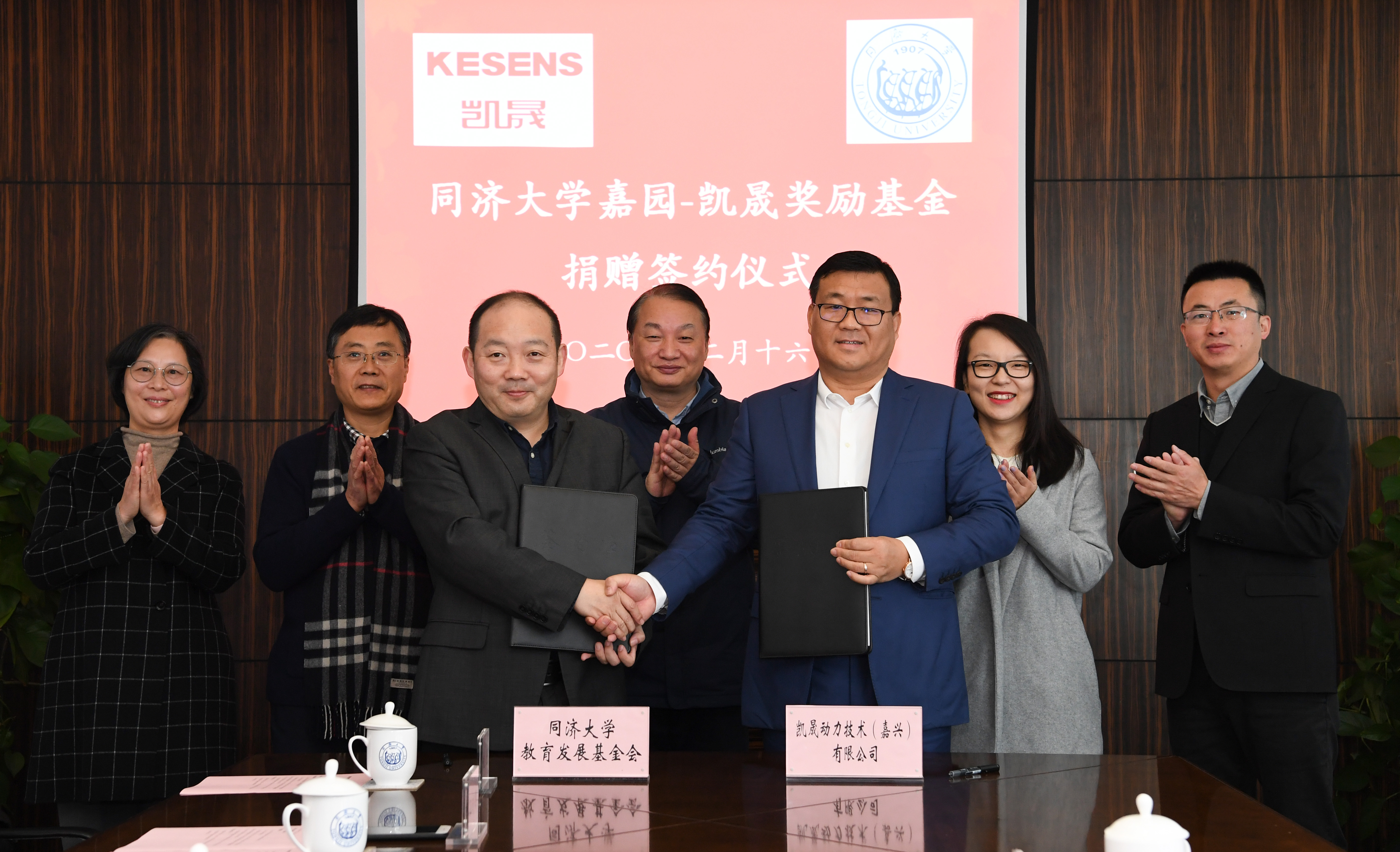 12月16日上午,“同济大学嘉园—凯晟奖励基金”捐赠签约仪式在四平路校区举行。凯晟动力技术(嘉兴)有限公司董事长陈志贤、董事会秘书李真,我校党委副书记徐建平,以及教育发展基金会、嘉定校区管理委员会办公室负责人等出席仪式。