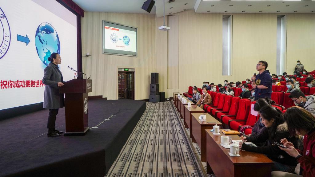 12月11日,学校外事办公室主任于雪梅面向大一新生作了题为《身在同济,拥抱全世界》的主题讲座,盘点在校期间的国际交流机会,解读我校国际交流政策,帮助新生更好地规划未来的学业发展。来自新生院九大学堂的300名学生聆听了讲座。