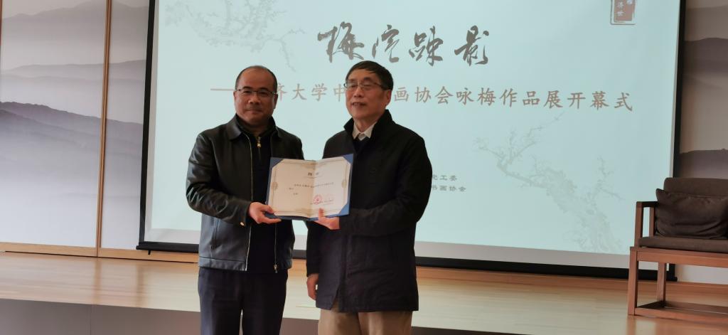 江理平在致辞中表示,“梅院疏影”恰如其分地体现了梅花高洁、雅丽的形象,此次书画展既为喜爱梅花的师生提供了交流平台,也传承了中华优秀传统文化,推广实践了传统书法和绘画艺术。