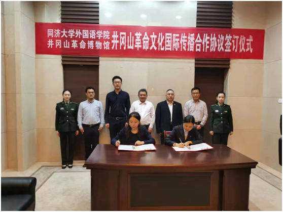 4月24日,同济大学外国语学院与井冈山革命博物馆红色革命文化国际传播合作协议签署仪式在井冈山革命博物馆举行。同济大学外国语学院院长吴贇和井冈山革命博物馆纪检组组长袁海晓代表双方签署协议。井冈山革命博物馆副馆长林道喜和同济大学党委宣传部负责人、外国语学院师生代表出席签约仪式。