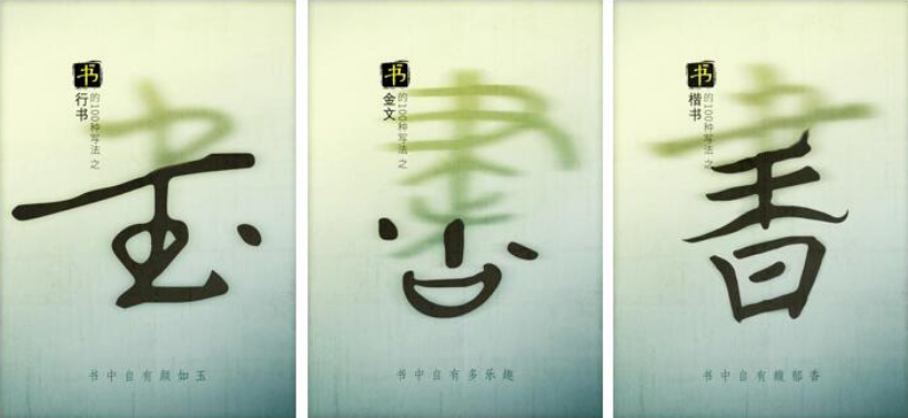 创作思路:以“书”的不同书法字体为主体,在整体字形中挖掘有意义的局部,如行书中的“玉”、金文中的笑脸、楷书中的“香”,以此表达读书的各种意义。
