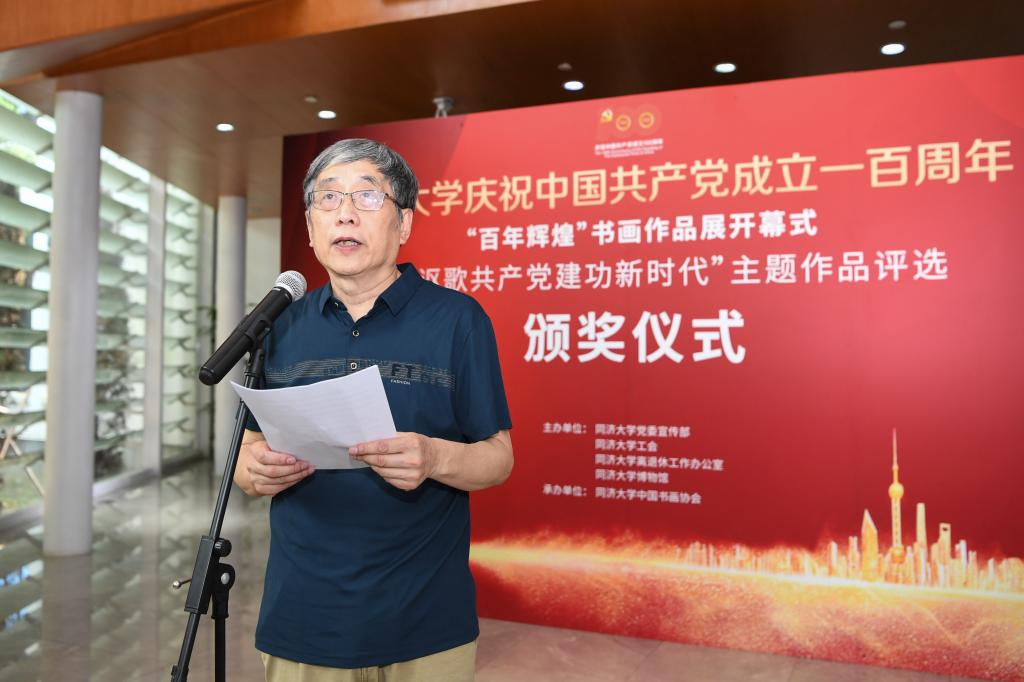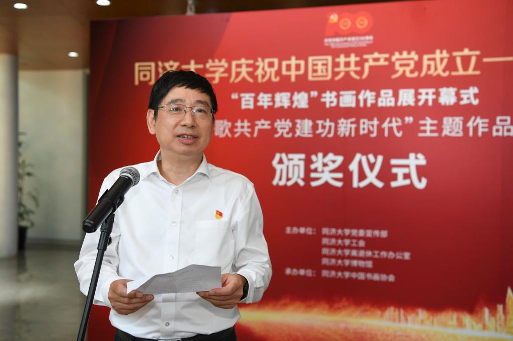 6月30日中午,同济大学“百年辉煌”书画作品展开幕式暨“讴歌共产党建功新时代”庆祝建党100周年主题作品评选活动颁奖仪式在四平路校区博物馆举行。校党委副书记、工会主席吴广明,同济大学教工中国书画协会会长江理平,党委宣传部、校工会、校妇委、离退休干部党工委、嘉定校区党工委、沪西北校区管委办负责人等出席仪式。