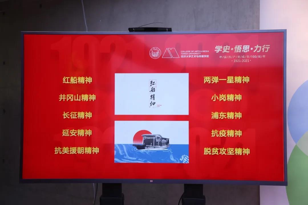 活动中,《中国精神》系列短片发布仪式举行。动画专业负责人介绍了项目的背景、创作过程和创作意义。由动画专业师生担任主创团队的《中国精神》系列动画短片,包含了《红船精神》《井冈山精神》《延安精神》《长征精神》《抗美援朝精神》《两弹一星精神》《浦东精神》《脱贫攻坚精神》《小岗精神》和《抗疫精神》一系列“中国精神”主题,为庆祝建党百年献上独特的贺礼。在创制动画短片的过程中,学生对党的重要历史节点和事件有了更深刻的了解和感悟,从中汲取了奋进的力量,这也是“课程思政”的一次生动实践。