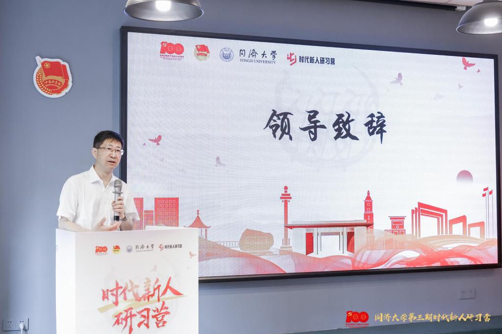为庆祝中国共产党成立100周年,深入学习贯彻习近平新时代中国特色社会主义思想,7月10日,同济大学第三期时代新人研习营开营仪式在创业谷举行。校党委副书记彭震伟出席并致辞。