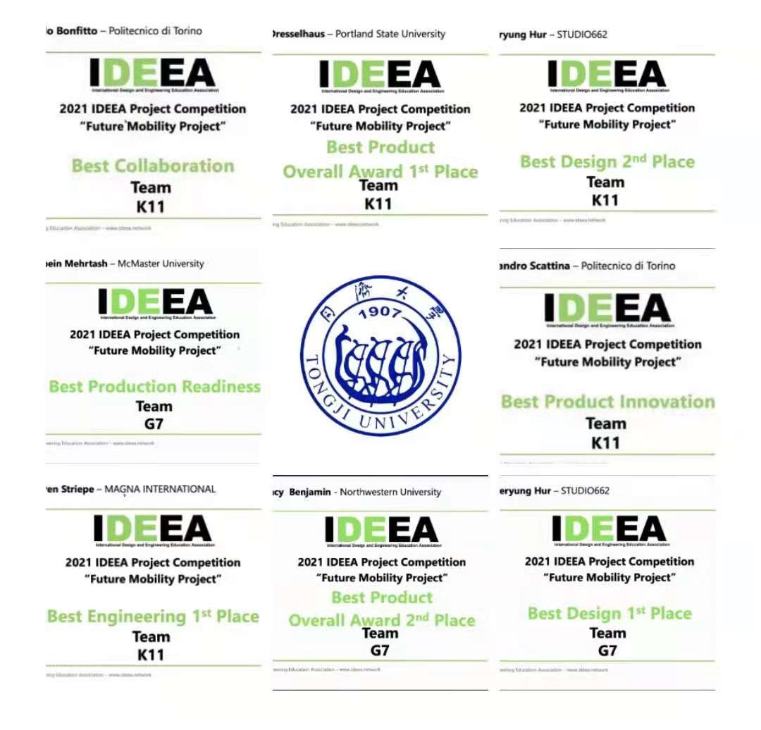 在过去6个月的备赛期里,在相关指导教师的指导和支持下,同济PACE中心的队员们齐心协力设计了参赛作品——HYLO(hydro lounge)、轮轨两用车,并完成了视频制作、沙盘设计等展示项目。凭借着出色的设计水平和扎实的工程基础,同济PACE中心最终在大赛中取得了优异成绩:由同济PACE中心主导的K11(HYLO)组荣获年度总成绩第一(Best Product Overall Award 1st)、最佳团队合作奖(Best Collaboration)、最佳设计第二名(Best Design 2nd place)、最佳工程第一名(Best Engineering 1st Place)、最佳产品创意奖(Best Product Innovation);同济PACE中心参与的G7(轮轨两用车)组荣获年度总成绩第二(Best Product Overall Award 2nd)、最佳设计第一名(Best Design 1st place)、最佳落地项目(Best Production Readiness)。