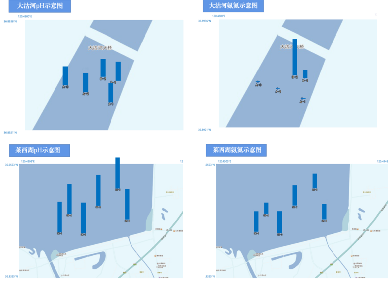 “地”即使用“无人船采集水样+化学分光光度法检测水质指标”的体系来监测水体。由于大沽河和莱西湖水面宽广、桥梁较少,人工采样存在一定困难,故团队成员使用无人船对大沽河和莱西湖水面下0.5m处进行远程采样。此次水质监测共设置11个采样点,其中大沽河5个采样点、莱西湖6个采样点。采样完成后,团队成员利用便携式水质快速检测仪在现场测定了PH、化学需氧量、重金属(包括铁、钴、镍、铜、锌、镉)、总硬度4个指标。之后经过严格的质控措施将水样运输到实验室,完成了总氮、氨氮、总磷等其他指标的测定。实践团队每个采样点共测定7个水质指标,共得到77个数据,对大沽河和莱西湖水环境状况有了初步了解。