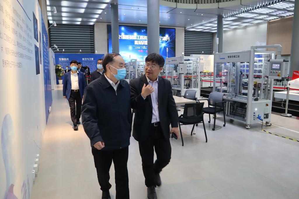 周济院士一行还参观了同济大学工业4.0学习工厂,对同济大学对智能制造人才培养工作作出的贡献给予肯定。