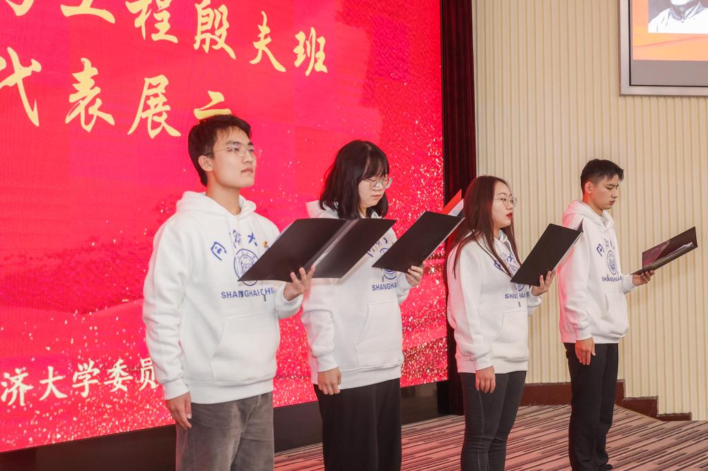 随后,第四届“青马工程殷夫班”学员代表动情朗诵了《我们是青年的布尔塞维克》,歌颂先烈们的英勇事迹,呼吁同济青年坚定理想、戮力同心,树立远大理想、锤炼品德修为、练就过硬本领,不负时代,不负韶华,不负党和人民的殷切期望。校党委学研工部负责人为本届青马工程学员授予班旗。