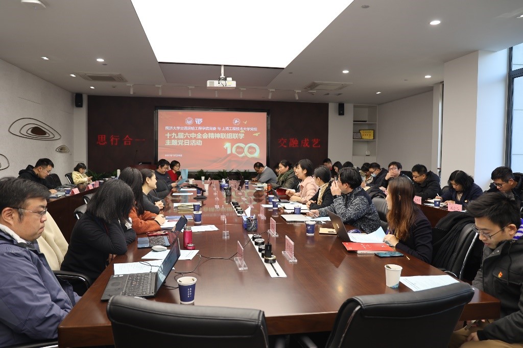 为深入学习贯彻十九届六中全会精神,从中国共产党百年奋斗的重大成就和历史经验中汲取力量,加强校际党建交流,深入推进落实交通强国战略,12月29日,同济大学交通运输工程学院党委与上海工程技术大学党校在嘉定校区开展联组联学主题党日活动。上海工程技术大学党委组织部、党校、电子电气工程学院党委、城市轨道交通学院党委、退休教工党委、城市轨道交通学院及我校交通运输工程学院相关负责人等参加了会议。