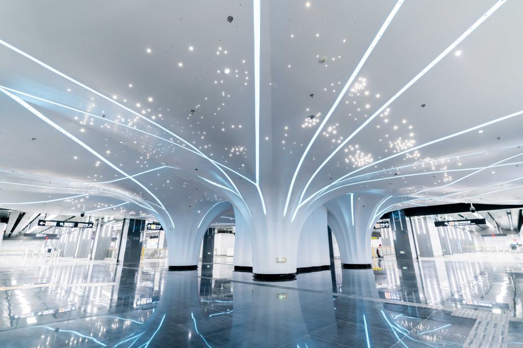 于是,立柱变成了树,各种管线收纳进去,五彩的光从“树”中漫射出去,红的、紫的、蓝的、白的、浅红的、橙黄的……郑鸣说,建议您驻足几分钟,看一会儿,劳累一天的你很快就会“浴美重生”。这处地铁空间,现在已成市民的热门打卡地。
