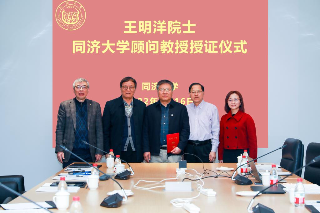授证仪式上,顾祥林介绍了王明洋院士的求学经历和卓越成就,为王明洋院士颁发了同济大学顾问教授证书,并为其佩戴校徽。王明洋院士表示,感谢母校同济大学的培养,今后将在防护工程领域的学术交流、学科建设等方面深化合作,共同推进土木工程防灾事业的发展。