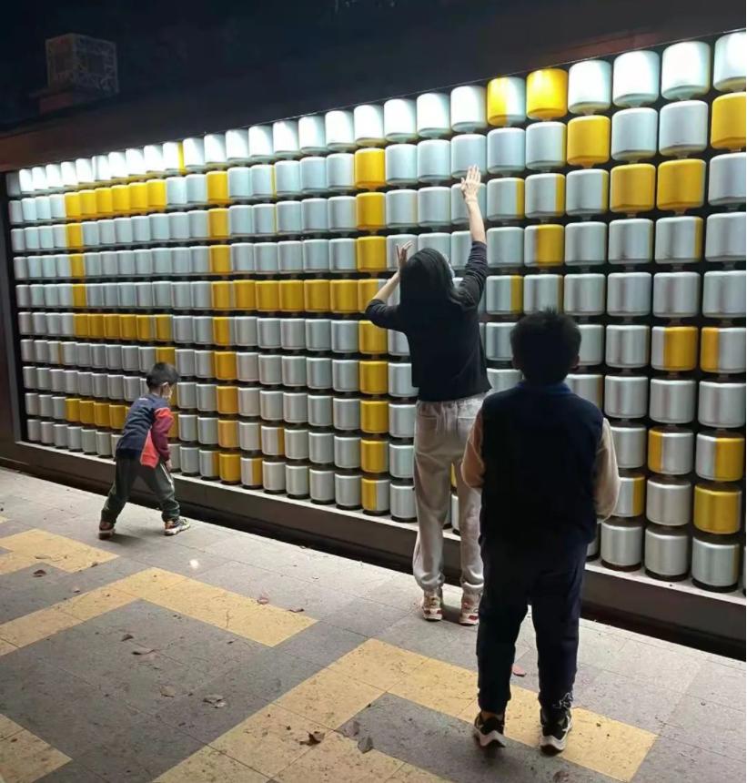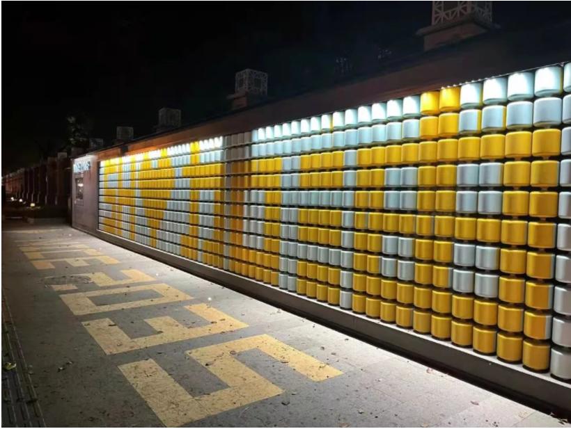 “翻转同济”是上海NICE2035未来生活原型街赤峰路段的一个创意交互装置,由上海筑道城市设计咨询有限公司设计总监、同济大学设计创意学院外聘讲师郭泠设计。800个蓝橙双色圆筒组成的“翻转同济”墙面,每个圆筒都可以随意拨动,转动之下,墙面便会不断地变化出不同的图案色彩。恰好就在公交车站旁,里边是同济大学校园,外面是人来人往的居民区,下班路过、散步经过、等候公交时随手“翻转”一下,不管你是谁,都可以用这面翻转墙“说”几句自己的心里话,或是表达一下当下的感受,有点像个“树洞”。去年设计完成后,“翻转同济”就成为“网红墙”,毗邻校园,墙上出现最多的还是甜甜的表白。“有时候上午是一个人的名字,下午出现的就是另一个人名了。”每天上班都会经过这面墙的郭泠笑道,甜蜜蜜的恋爱告白图案也让这里充满了青春的气息。