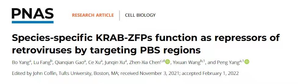 杨鹏/王译萱课题组合作揭示锌指蛋白靶向逆转录引物结合位点抑制逆转录病毒的机制,相关研究成果发表于《美国科学院院报》