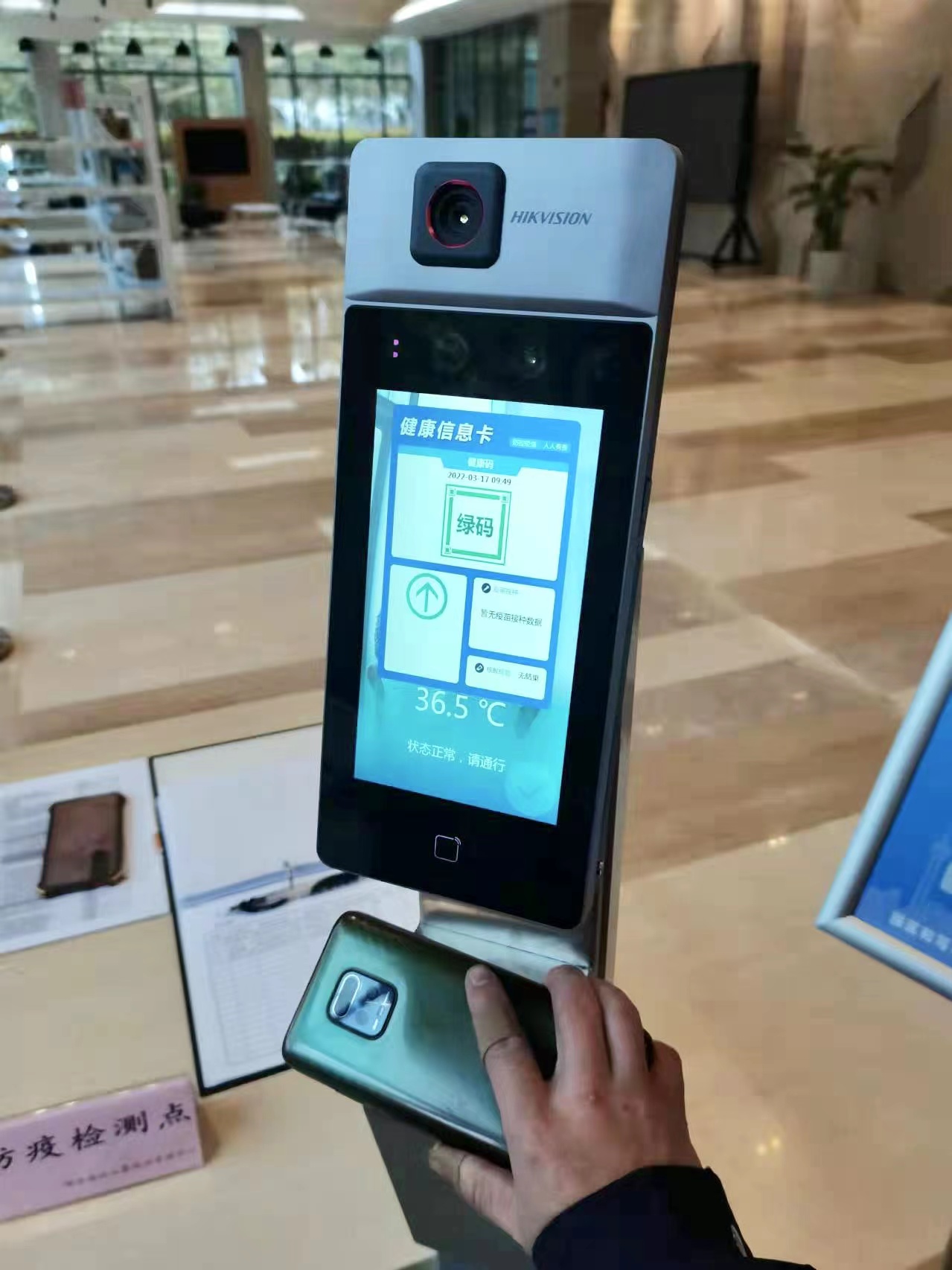 杨浦分园园区总经理钱学标为解决“守门”难题,探索运用智能设备“人脸门禁测温一体机”以快速有效地收集、研判、核查各类突发状况,建立“信息化”的防疫大网。进入园区的员工只要站在测温仪前打开健康码往读卡器前一扫,0.3秒内员工的健康信息数据(包含健康码、通行码、疫苗接种、核酸检测、体温)便可清晰地显示出来,从而实现了高效的防疫管理。