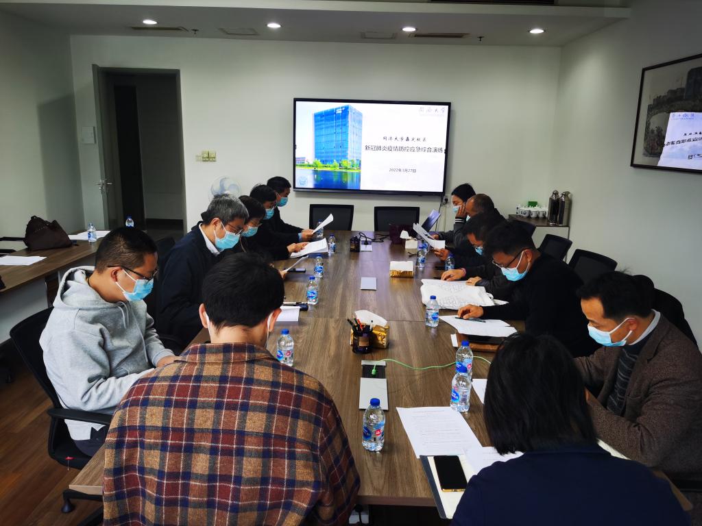 嘉定校区管委办负责人介绍了演练环节和主要内容。本次演练模拟机械与能源工程学院发现一例密接教师,校区各相关部门在区疾控的指导下应对处置的全过程,包括启动应急处置预案、信息上报、楼宇封闭、隔离转移、初步排查、后勤保障、全员核酸检测等多个场景。
