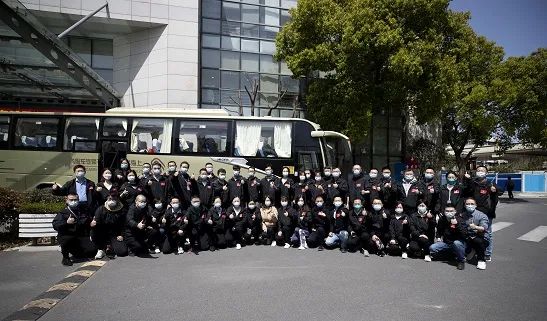 3月29日,由468名医务人员组成的同济大学附属第十人民医院医疗队集结出发,奔赴新国际博览中心临时集中隔离收治点开展救治工作。这支医疗队由85名医生、366名护士以及17名管理人员组成,将主要负责收治轻症患者和无症状感染者。