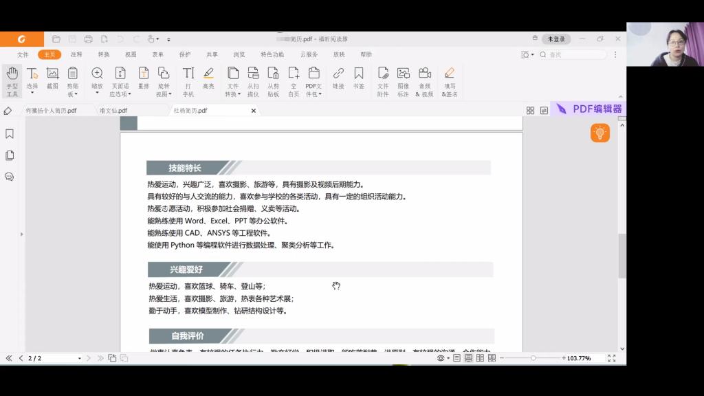 “简历门诊”活动首次从线下转为线上,由指导老师一对一线上修改简历,对学生简历中存在的求职意向不明确、格式混乱、重点不突出等问题进行“诊断”,并结合学生的求职目标、兴趣爱好等因素提供指导和修改意见。来自葛兰素史克、智联招聘、杨浦区人社局、乔布简历、复旦大学等单位的20余位专业老师,参与指导了近200名学生。