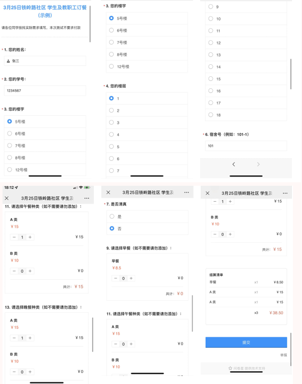 疫情之下,如何保障学生快速、高效、安全就餐?高效地统计订餐信息、做好财务核对,是保障餐饮系统有序运行的重要一环。为此,马腾利用自身过硬的专业技能,带领铁岭社区的志愿者们迅速成立起一支信息化管理小组,设计了一套功能完备的线上订餐系统。学生只需填写问卷即可完成订餐与付款流程。根据对同学们的问卷结果,系统还可分别按照楼宇、楼层提供订餐汇总和明细,极大地方便了各楼长、楼层长的领餐工作。土木工程学院博士生刘鹏还编写了程序,实现了财务核对表汇总信息的自动抓取和邮件的自动发送,为后勤进行对账审核减轻了不少压力。该系统于3月16日起上线,已平稳运行至今,共服务近千名社区学生。