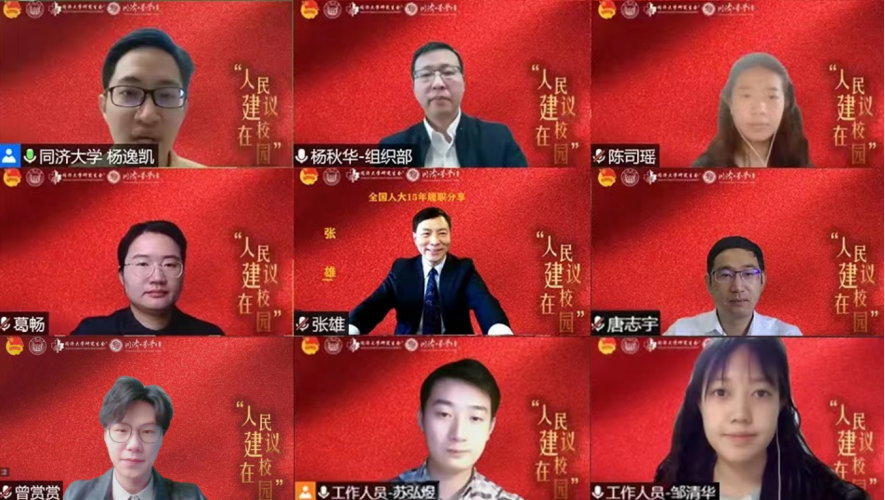 活动聘请全国人大代表、我校材料科学与工程学院教授张雄,校党委组织部副部长杨秋华为“同济大学学生代表履职导师”。校团委相关负责人,我校学生(研究生)代表、学生校务助理等参训学员参加了活动。活动同时面向广大学生开放,并邀请沪上十余所高校的学生会组织骨干代表,参与规模近400人。