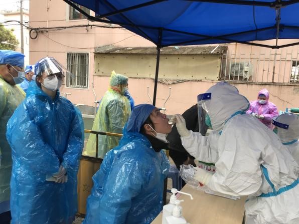 民革党员中的医护人员也第一时间加入了核酸采样医疗队,支援嘉定区的核酸筛查工作。特别是3月20日天气极为恶劣,刚下夜班的党员医护人员克服困难,在风雨中经过4小时不间断工作,顺利完成了方泰社区1200余人次的核酸采样工作。