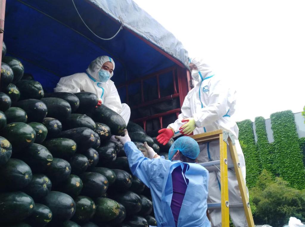 采购部员工在领导带领下全方位、多渠道紧急调取供应商,24小时“在线”沟通食品原材料、一次性餐具等采购任务,至今已完成了采购原材料1200余吨、一次性打包餐盒800000只、筷子989000双及包装袋保温袋758600只。