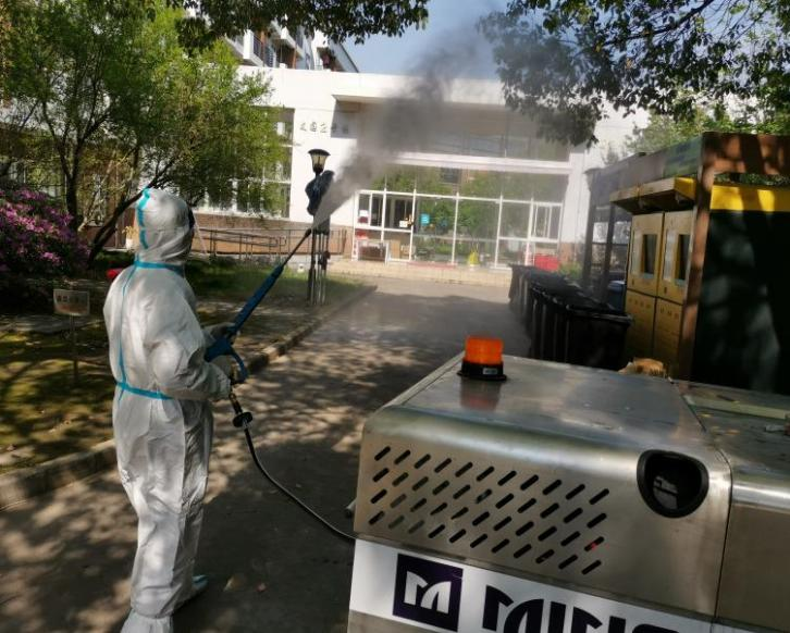 学校封控管理期间,生活垃圾产量激增50%,校容的保障压力也达到了前所未有的高度,清运和压缩工作量翻了一倍。物业公司组织员工有序清运、日产日清,确保校园垃圾及时处理,严格避免垃圾滞留引发二次污染。消杀工作也是疫情防控工作的重要环节,物业公司组织协调各个楼宇物管处,组建专门负责消杀的工作团队,每日不间断开展消杀工作。