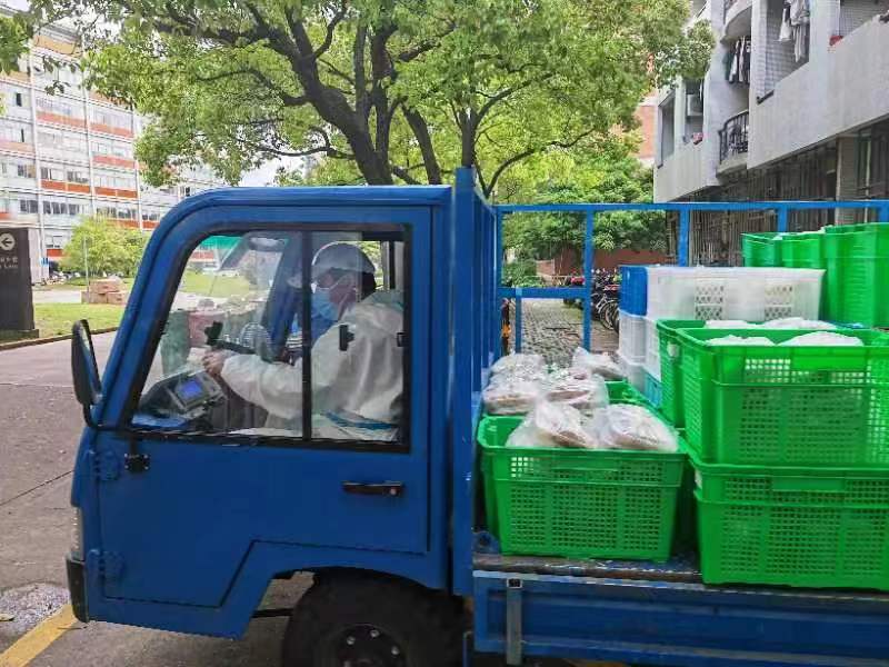 4月校园静态管控后,餐饮公司开始提供送餐服务,以确保师生封控楼宇、隔离点、教师公寓等地的饮食保障。储配部每日三次为各隔离点、教师公寓等地配送共计12000份盒饭。每次配送完毕会对配送车进行全车消杀,确保师生用餐安全。截至目前各食堂为各校区供应早餐507707份、午餐511544份、晚餐501585份。