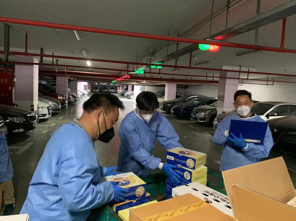 会务公司采购部紧急采购各类生活物资包括折叠床、床垫、户外帐篷、被子等各类生活物资送至各校区,同时紧急组建了物资采购组、卸货配货组、车辆调度组、仓储组、综合协调组积极配合物资采购、收货、消杀、大仓卸货、配货、装车、发货、楼宇点卸货等工作。目前每日供应水4000桶、方便面12000桶、火腿肠13000根、牛奶23000盒、饼干5000包。