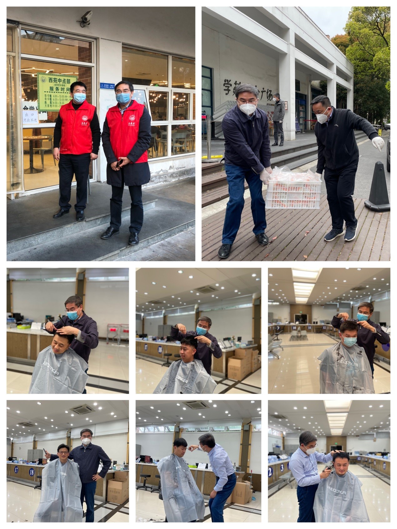 3月9日以来,一直坚守校园的男同胞们头发渐长,却苦于找不到理发师,只能任其肆意生长。朱志良急群众之所急,拿起推剪,“我可以”,成功转型为行政楼广受欢迎的理发师。从平头、寸头开始,自我修炼,逐渐升级技能,满足大家的个性化需求。目前,已有数十位男同胞在他的推剪下焕然一新,昂扬斗志!
