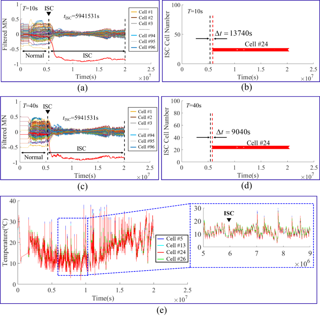 随着“5G”通信技术的日益成熟和“云计算”的兴起,借助于“云”强大计算和存储能力,及“5G”的实时传递能力,使得“云BMS”成为可能。魏学哲教授团队基于云端海量电压、电流及温度的低密度数据特征,通过数据挖掘构建基于离群系数的内短路诊断方法,最终提出“云BMS”对内短路实时诊断解决方案,该方法无论是对10s或40s的低频数据都有较好的识别效果。