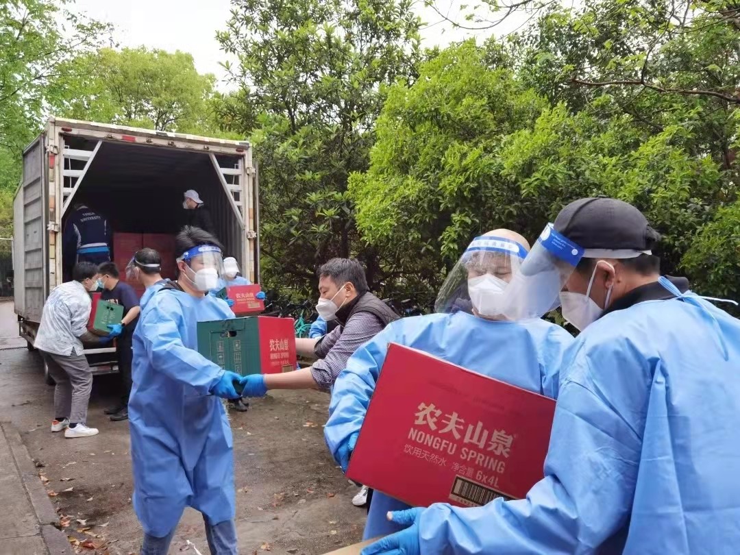 面对如此情况,在学校疫情防控领导小组和嘉定校区疫情防控专班的领导下,体育教学部党委书记李瑞杰牵头,在嘉定校区迅速组织了一支捐赠物资配送突击队。队伍由体育教学部、嘉定游泳馆、国际足球学院相关教职工及部分嘉定校区学院教工志愿者组成,主要负责配送校外捐赠物资到师生所在楼宇,打通“最后一公里”的障碍。