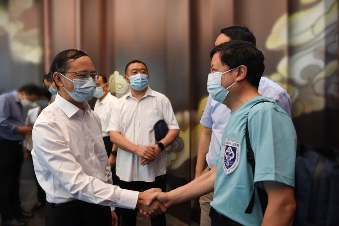 海南疫情牵动着同济人的心。8月15日中午时分,作为上海市第二支援琼医疗队的成员,来自同济大学附属同济医院、附属第十人民医院、附属上海市肺科医院、附属第一妇婴保健院的医护人员集结于上海虹桥机场,冒着酷暑飞赴海南,支援当地抗疫医疗救治一线工作。上海市副市长宗明到机场为上海医疗队送行。