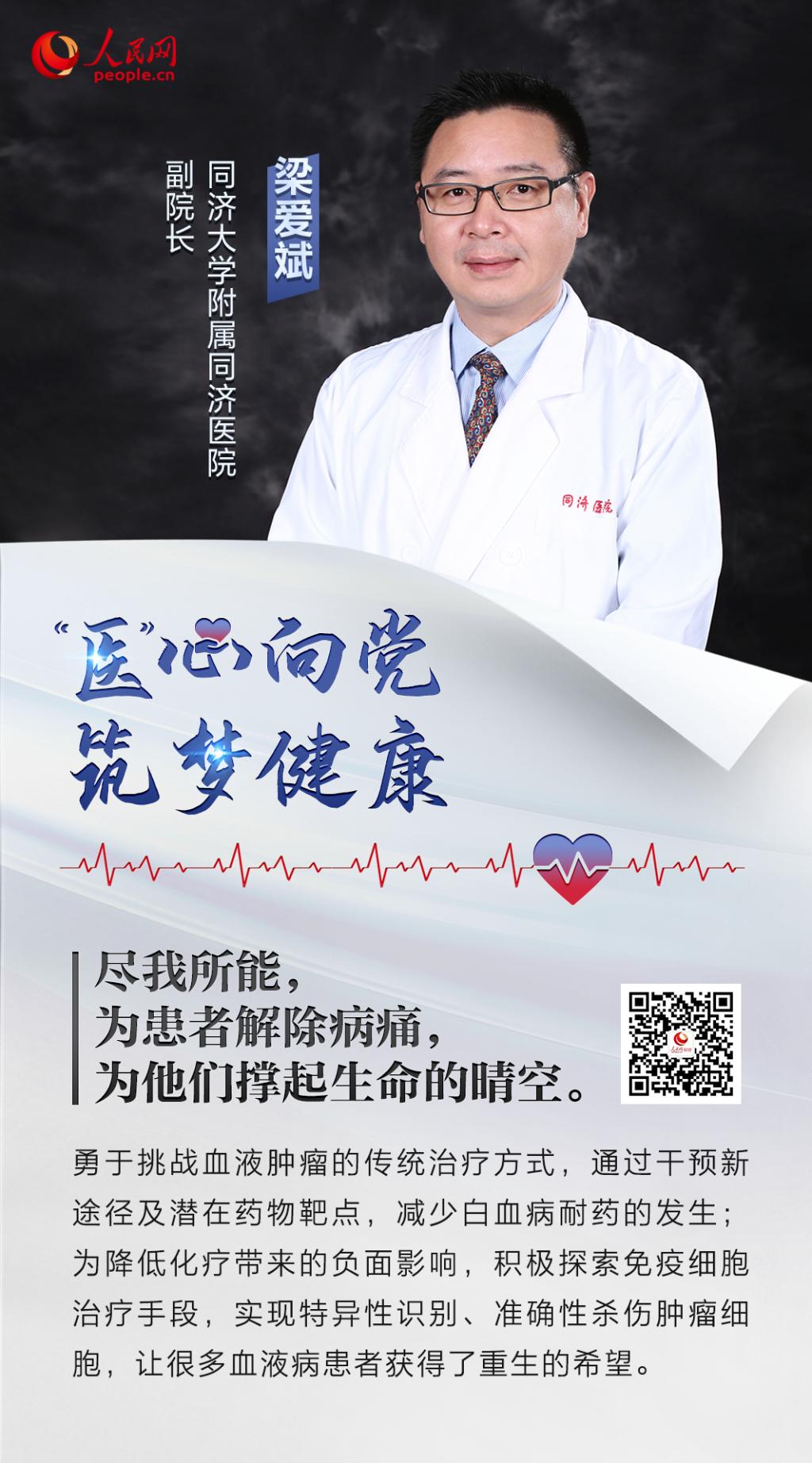 作为附属同济医院血液科领军人,梁爱斌教授从事血液系统肿瘤及传染病的预防和诊治工作近30年。他带领团队勇于挑战血液肿瘤的传统治疗方式,通过干预新途径和潜在药物靶点,减少白血病耐药的发生。为降低化疗带来的负面影响,他积极探索免疫细胞治疗手段,实现特异性识别、准确性杀伤肿瘤细胞,让许多血液病患者获得了重生的希望。