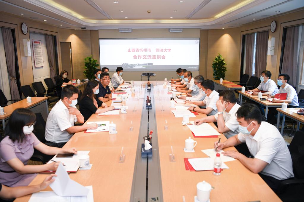 吕培明代表学校对朱晓东一行来访表示欢迎,并简要介绍了学校历史、特色学科和未来发展规划。他表示,同济大学非常重视社会服务和科技成果转化工作,注重聚焦国家发展战略,发挥自身学科优势,不断探索校地、校企合作的有效路径,希望在以往合作基础上,紧密对接新的合作需求,更多地为山西省、为忻州市输送高质量人才和高水平成果。