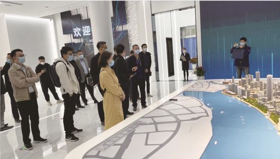 全体人员首先参观了北外滩数字展示馆,听取工作人员讲解、初步了解北外滩城市规划发展的结构和思路,并一路步行,走访北外滩滨江段,实地考察北外滩城市建设情况。
