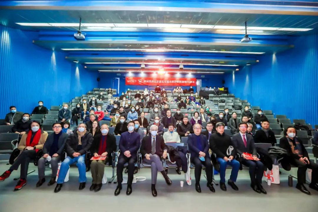 张锦秋院士、何镜堂院士、郑时龄院士、程泰宁院士、刘加平院士、崔愷院士、王建国院士、孟建民院士、常青院士、吴志强院士、段进院士、庄惟敏院士、梅洪元院士,中国建筑学会理事长修龙、中国城市规划学会理事长杨保军、中国风景园林学会副理事长周如雯代表理事长陈重、上海建筑学会理事长曹嘉明、上海城市规划学会理事长伍江、上海风景园林学会理事长朱祥明、华东建筑集团股份有限公司总经理沈立东,同济大学党委副书记彭震伟、副校长娄永琪,全国近30所建筑院校负责人,10余位杰出校友代表,教授代表分别致辞或发来贺信,为学院70年华诞送上美好祝福,对学院70年来为我国城市建设发展、人居环境建设作出的重要开拓性贡献给予充分肯定,并对学院学科未来发展寄予厚望。建筑与城市规划学院党委书记刘颂致欢迎辞,院长李翔宁主持并致谢辞。