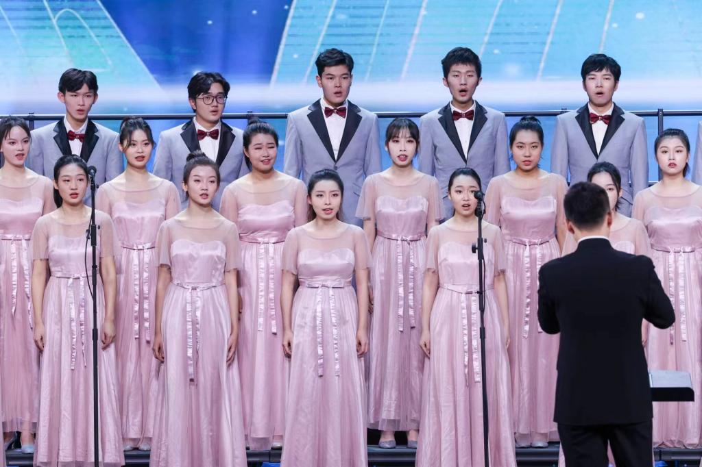 学生合唱团在本次合唱节中演唱原创合唱作品《醉翁操》及合唱节主题曲《我们》。《醉翁操》是一首原创混声合唱作品,以苏轼著名诗篇《醉翁操》为词,谱曲而成,运用了丰富的音乐元素呈现出中国传统诗词文化与西方现代音乐的碰撞与融合。合唱团的学生们也克服疫情的重重阻碍,坚持每周团训,在专业的指挥老师、声乐老师指导下认真学习、排练,展现出了极高的刻苦精神和专业素养。在所有师生的不懈努力下,经过两个学期的精细打磨,该首曲目终于得以排练完成,最终历经层层遴选,在舞台上出色完成了此次原创作品的展示。通过演唱这首难度高、深度广的原创作品,同学们的声乐素养和演唱水平也得到了历练与提高。